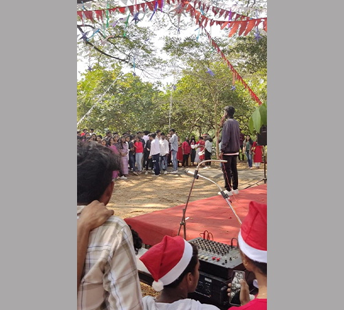 Christmas is a joyous occasion for exchanging holiday greetings, exchanging gifts, and bringing families together. The College Union organised this year's Christmas celebration on the college campus on December 22, 2022. As part of the festivities, the college choir performed a rhythmic performance, and Santa Claus added a surprise gift. Cultural events centred on Santa Claus, Christmas carols, Christmas cribs, and Christmas stars are available for students to compete in. The day concluded with a Christmas message from the Chairman of the College Union, and the staff and students were enthralled by the Christmas joy